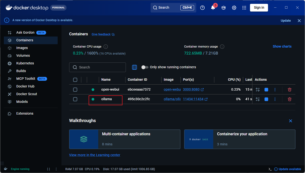 下载完成后,容器应该处于运行状态。