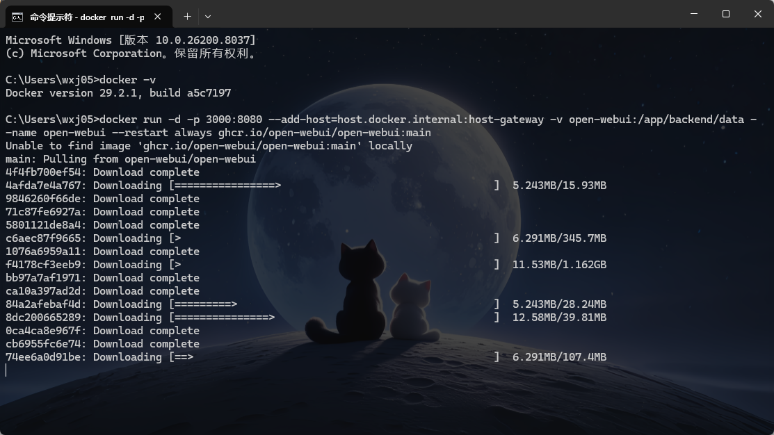 bashdocker run -d -p 3000:8080 --add-host=host.docker.internal:host-gateway -v open-webui:/app/backend/data --name open-webui --restart always ghcr.io/open-webui/open-webui:main