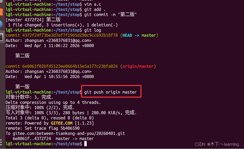 本文面向 Git 零基础新手,基于 Linux 环境 + Gitee 码云平台,从核心原理、环境搭建,到核心命令、团队协作、冲突解决全流程拆解,手把手带你掌握 Git 版本控制工具,所有操作均附实战示例与效果展示,可直接跟着操作落地。