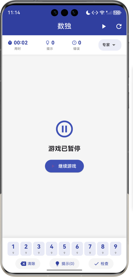 数独是一款经典的逻辑推理游戏,考验玩家的逻辑思维和耐心。游戏采用清新的靛蓝色主题设计,界面简洁优雅。玩家需要在9×9的网格中填入1-9的数字,使得每行、每列、每个3×3宫格内的数字都不重复。