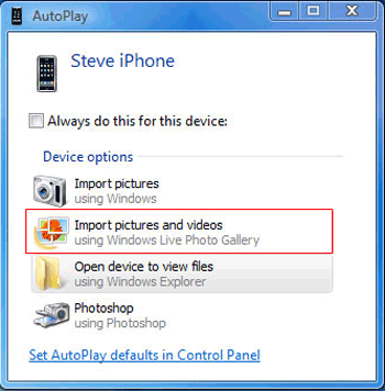 - 在电脑端,根据需要选择 "导入照片和视频" 或 "打开设备以查看文件"。