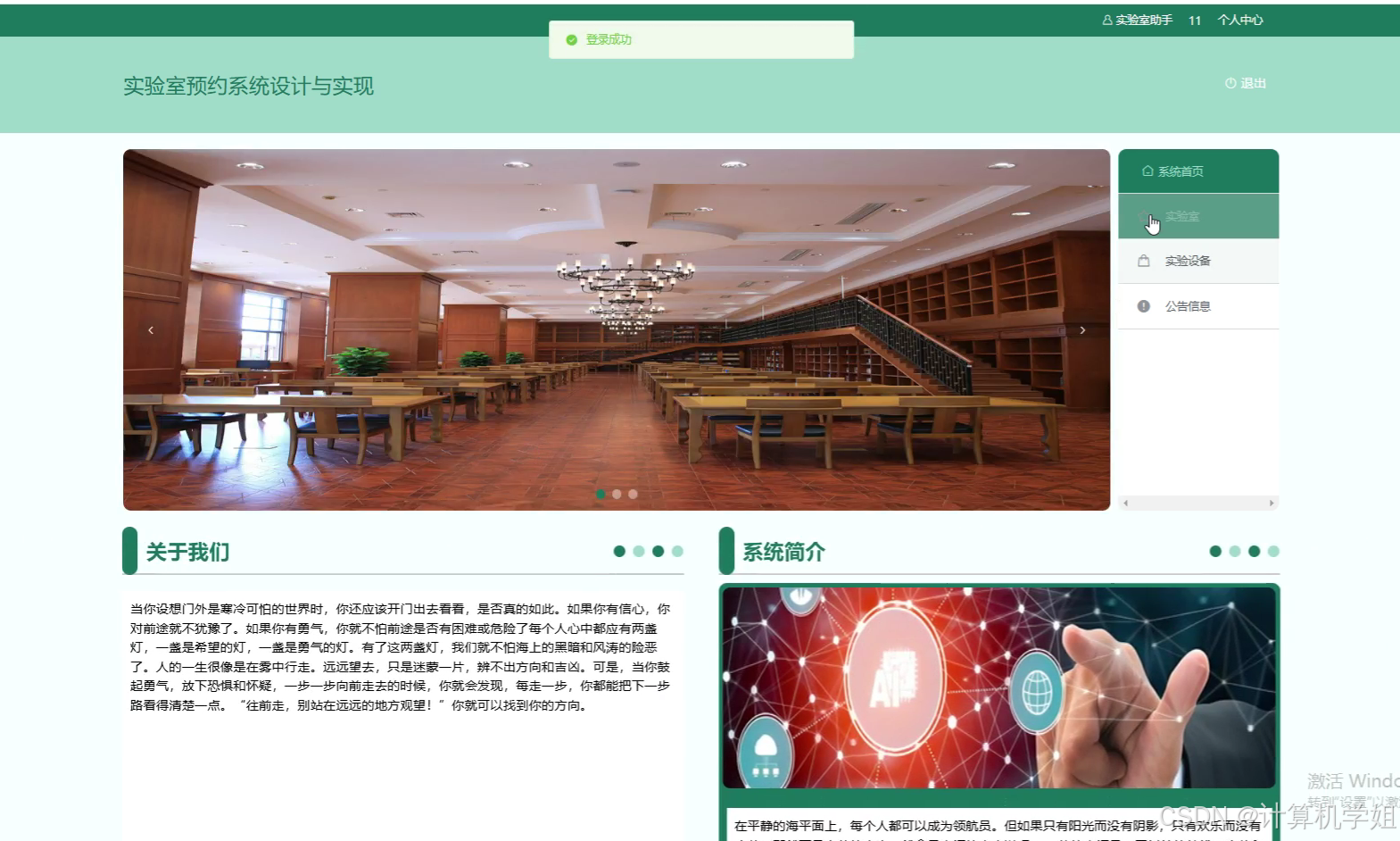 本研究基于SpringBoot+VUE+MYSQL技术栈,成功开发了一套高校实验室预约系统,实现了从用户登录到数据统计的全流程管理。系统通过前后端分离架构提升了开发效率与可维护性,前端采用VUE框架构建了交互友好的用户界面,后端利用SpringBoot快速搭建了稳定的服务层,MYSQL数据库则保障了数据的持久化存储与高效查询。系统核心功能包括实验室信息展示、在线预约、审批管理、数据可视化等,支持多角色权限控制,满足了不同用户群体的差异化需求。研究结果表明,该系统显著简化了实验室预约流程,减少了人工操作误差,提高了资源利用率与管理效率。通过可视化数据看板,管理者可实时掌握实验室使用情况,为资源优化配置提供了数据支持。本研究验证了传统技术栈在中小型管理系统中的适用性,为高校实验室信息化管理提供了低成本、高可用的解决方案,具有较高的实践价值与推广前景。