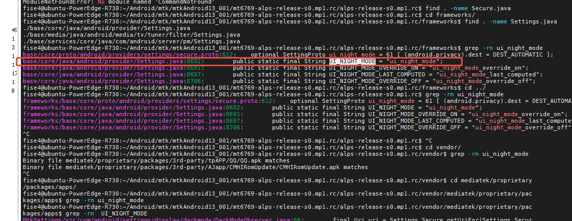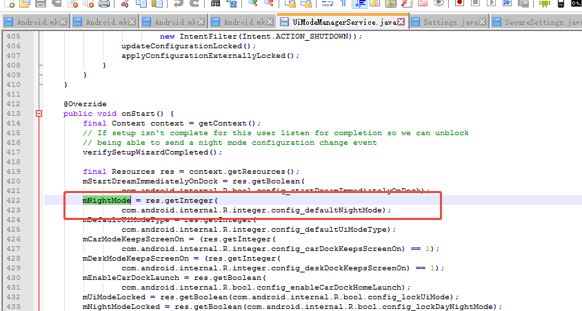 如上已经找到了framework层 设置 深色主体模式开关源码分析。 结论就是 通过 Secure.UI_NIGHT_MODE 数据库属性字段值来控制,那么接下来就是找到默认值,进而找到系统默认配置值地方。