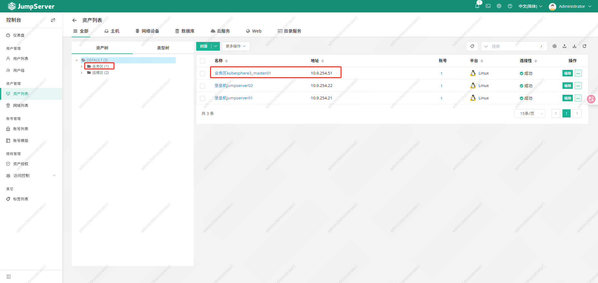 分别从主备机添加资产,然后从主备机分别访问被管资产,可以看到配置数据和录屏数据都可以从主备机上正常查看。其中录屏文件位置:/data/jumpserver/core/data/media/replay/