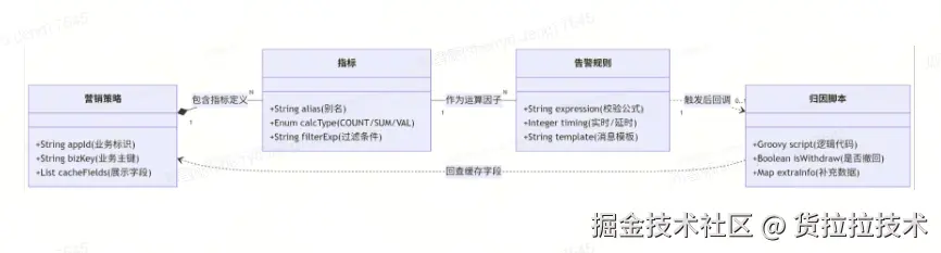 营销策略是业务行为的载体(如:司机任务 A)。注册策略时,平台会缓存关键的业务主键和字段,为后续指标聚合提供上下文。