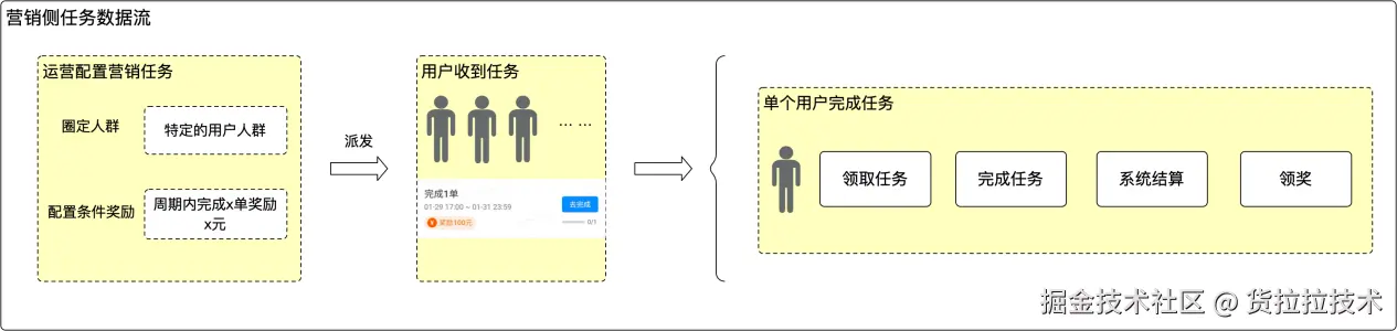 - 派发:系统根据策略与画像,向符合条件的用户下发任务。