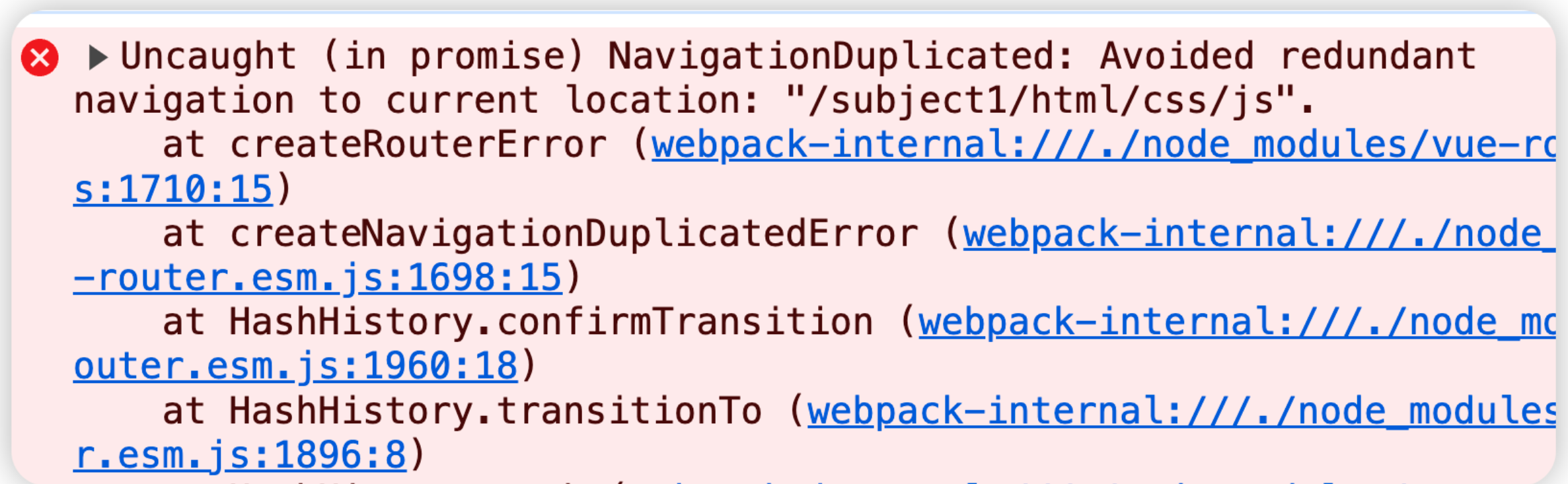 重复执行push或者replace的API时,会出现以下错误: