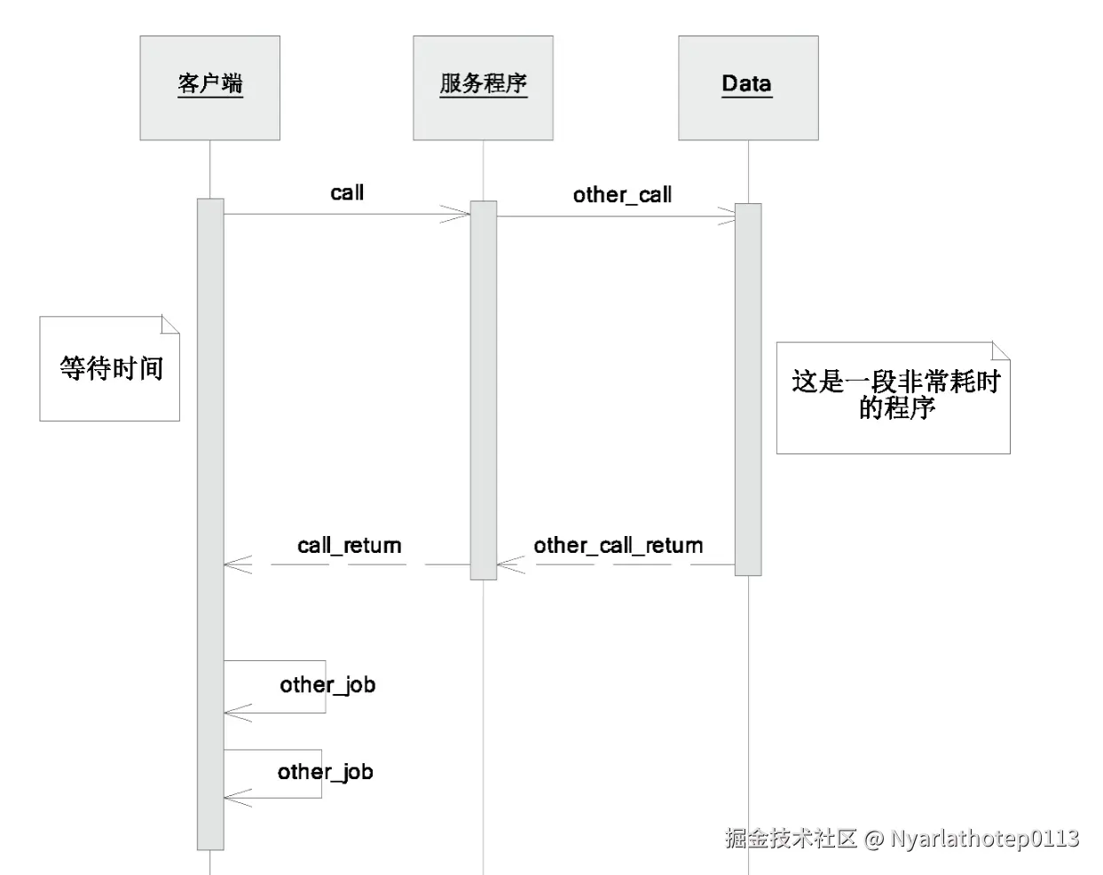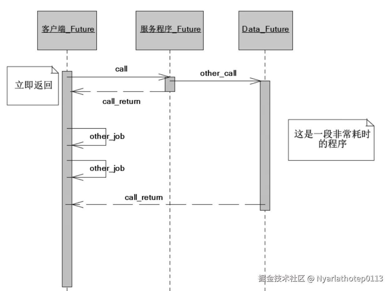 Client发起请求,处理其他业务,最终通过Future获取真实结果 - Client :接收请求后,立即返回