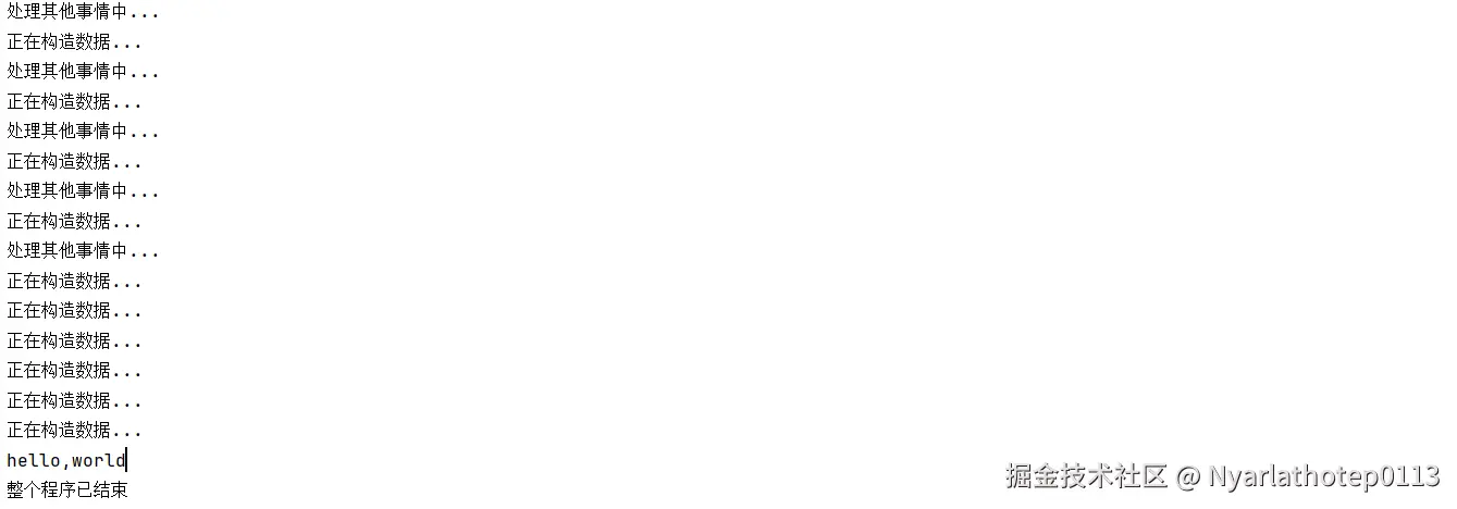 System.out.println("整个程序已结束");