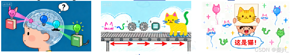- 这些神经元一层层地传递和组合信息,最后大脑综合判断:"这是猫!"