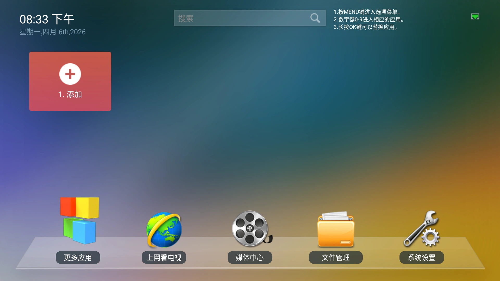 3.桌面和上网看电视和媒体中心,可通用桌面工具自由绑定第三方应用。