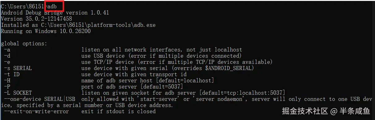 adb.exe文件所在地址C:\Users\86151\platform-tools -