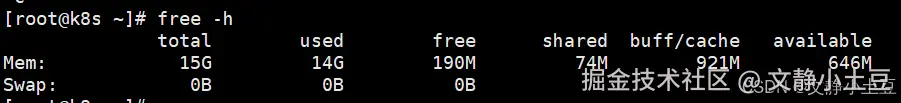 根据提供的 free -h 输出系统存在 内存耗尽风险 (总内存 15G,已用 14G,可用仅 600MB),但未触发 Swap(Swap=0),以下是详细分析和解决方案: