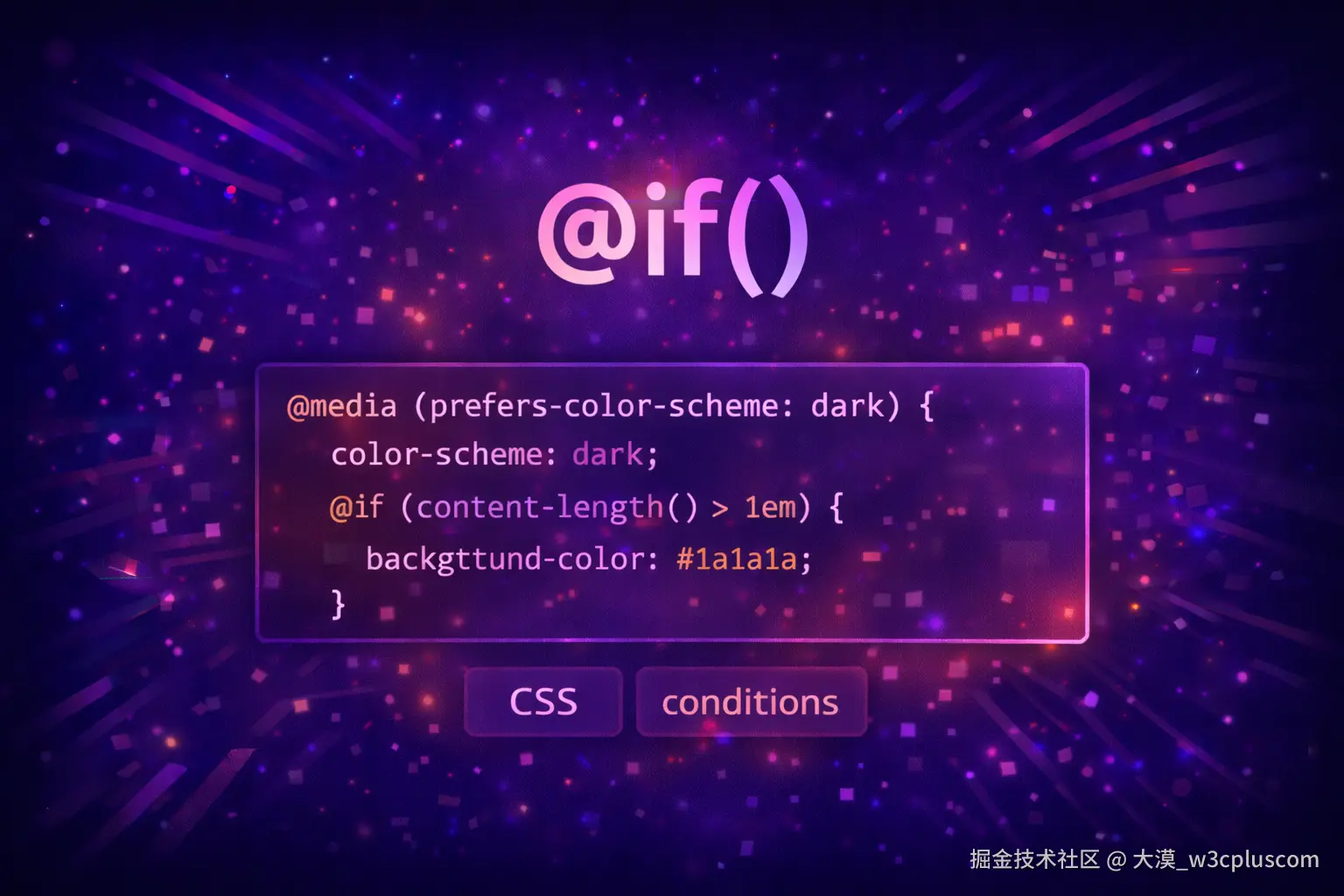 更进一步,当 @function 与 CSS 自定义属性、if() 条件函数以及容器查询等能力结合使用时,CSS 的表达力会进一步增强。你可以在样式层完成从"输入 → 计算 → 输出"的完整流程,让组件具备更强的自适应能力,而无需依赖 JavaScript。