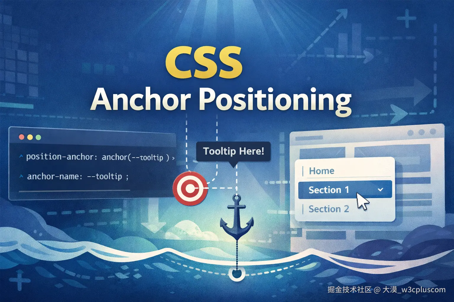 在很长的一段时间里,从提示框(Tooltip)、下拉菜单(DropdownMenu)、弹窗(Popover)到各种浮动菜单,这类 Web UI 一直依赖 JavaScript 来"贴住"触发元素。你要么使用第三方 JavaScript 库,要么自己写一套基于 getBoundingClientRect 的计算逻辑,在滚动、缩放和布局变化时不断更新位置。归根结底,浏览器本身一直缺少一个原生能力------让一个元素跟随另一个元素定位。
