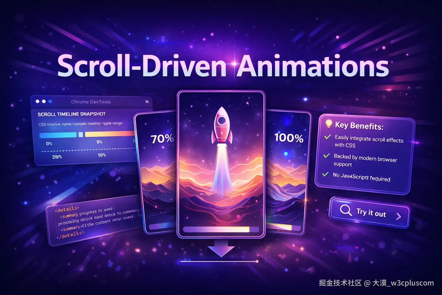 这带来的变化,也不仅仅是"少写一点 JavaScript"。更深层的影响在于:你可以用更少的代码实现更复杂的效果,同时获得更好的性能表现,因为许多计算与渲染发生在浏览器内部;组件的实现也更加稳定和可维护,不再需要手动处理大量边界情况或同步状态。