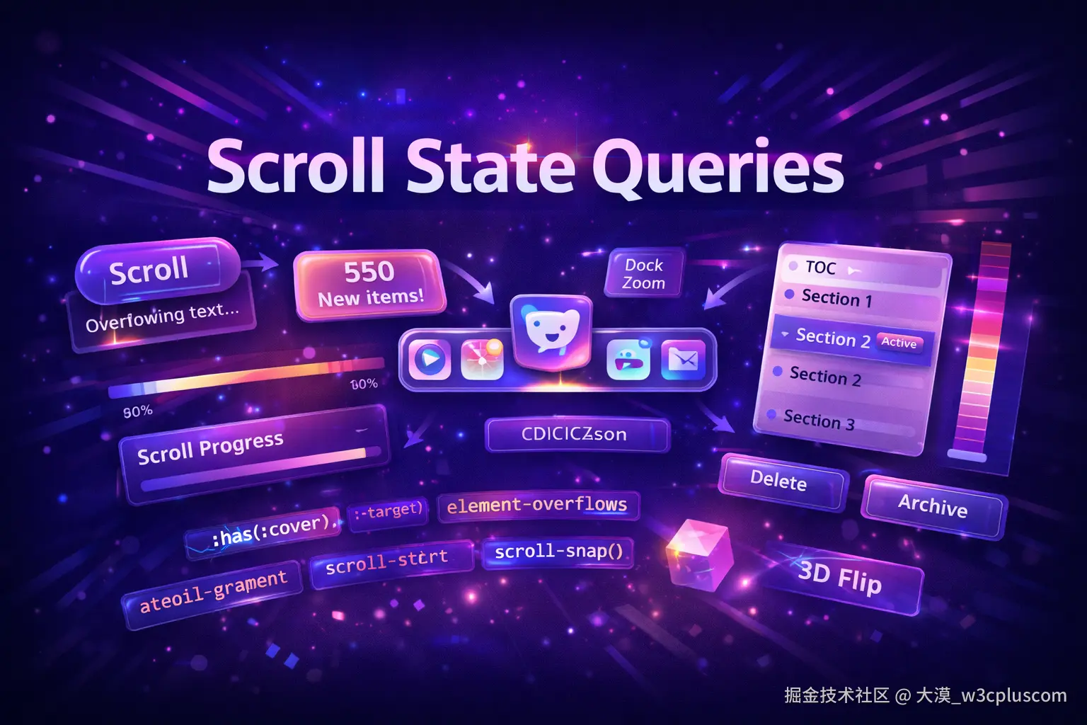 也就是说,样式不再只是对结果的描述,而是可以根据上下文、状态和条件主动做出响应。这种能力让很多过去需要"状态判断 + DOM 操作"的场景,可以直接在 CSS 层完成。