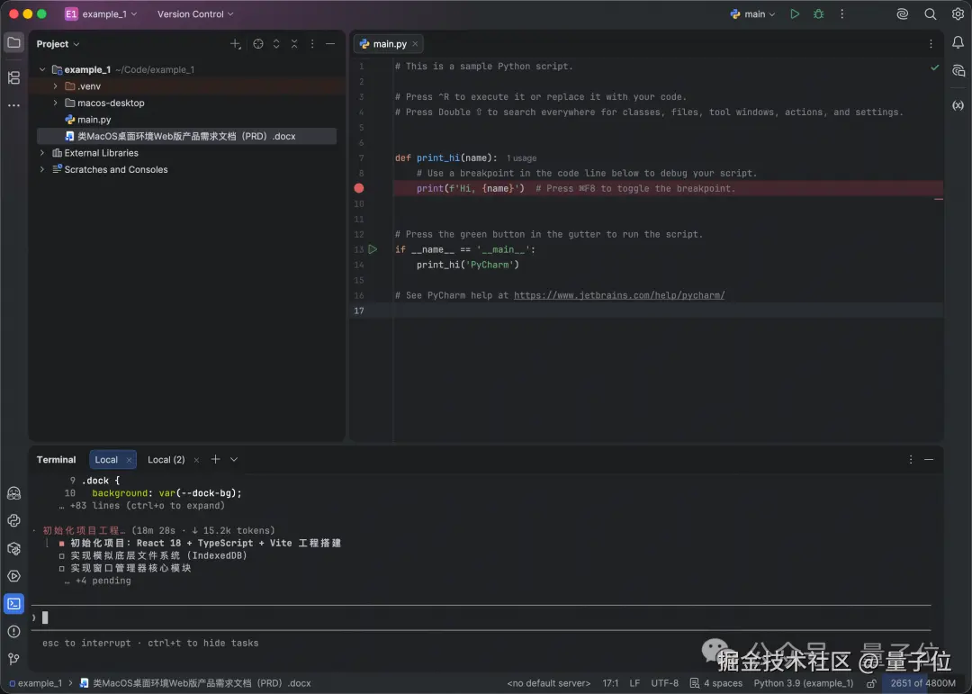 瞧,待它分析完任务之后,自己就开始唰唰地编程了: