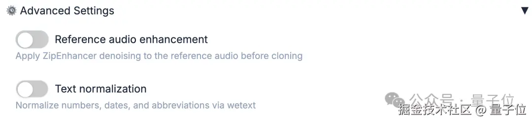 这其实是 VoxCPM 2 的参考音频降噪功能,只要勾选一下,声音就会变得清晰: