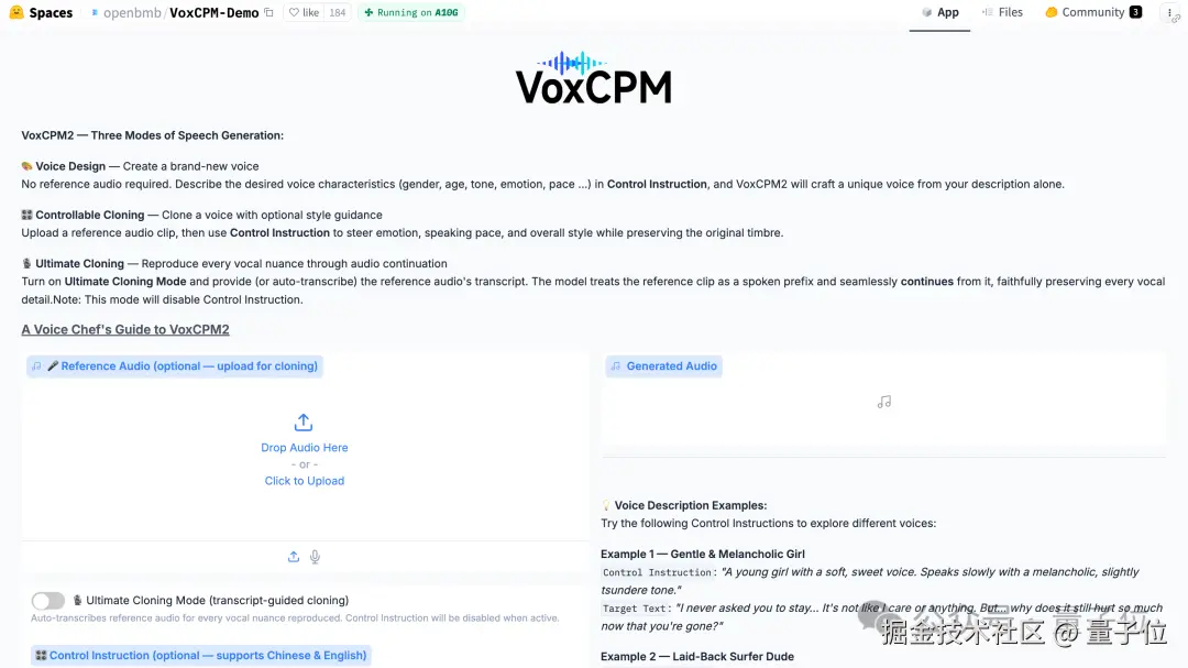 开源的 VoxCPM 2,我们现在就可以在在线体验的网站上体验了(地址见文末):