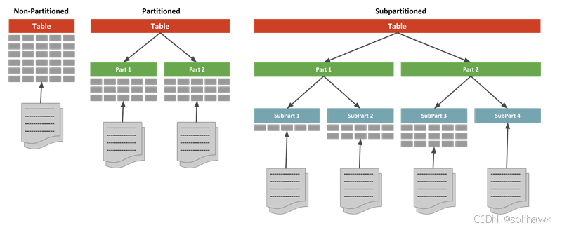 分区表(Partitioned Table)指在单节点内对表数据内容按照分区键以及围绕分区键的分区策略对表进行逻辑切分。从数据分区的角度来看是一种水平分区(horizontal partition)策略方式,将表按照指定规则划分为多个数据互不重叠的部分。从数据分布而言,分区表分为主表和子表,主表是一个逻辑上的概念,实际的数据是存放在表分区子表之上,表分区可以增加删除、修改,存放的文件系统也可以不同,主表只需要同步全局的表结构和维护全局分区表的字典信息以及统计信息。