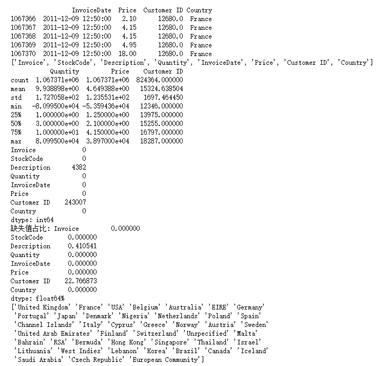 print(f"原始列名: ['Invoice', 'StockCode', 'Description', 'Quantity', 'InvoiceDate', 'Price', 'Customer ID', 'Country']")