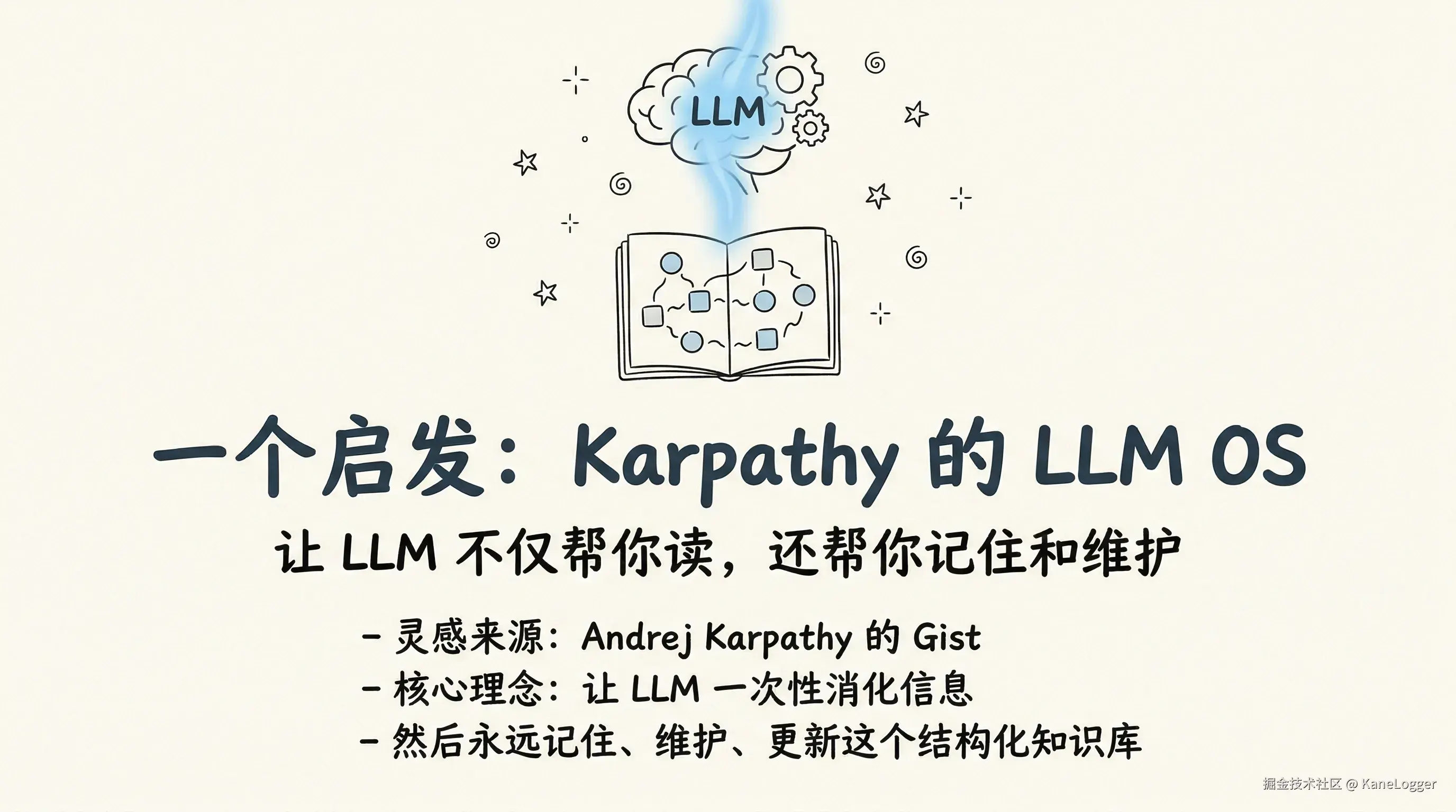 核心理念:让 LLM 一次性消化信息,然后永远记住、维护、更新这个结构化知识库。