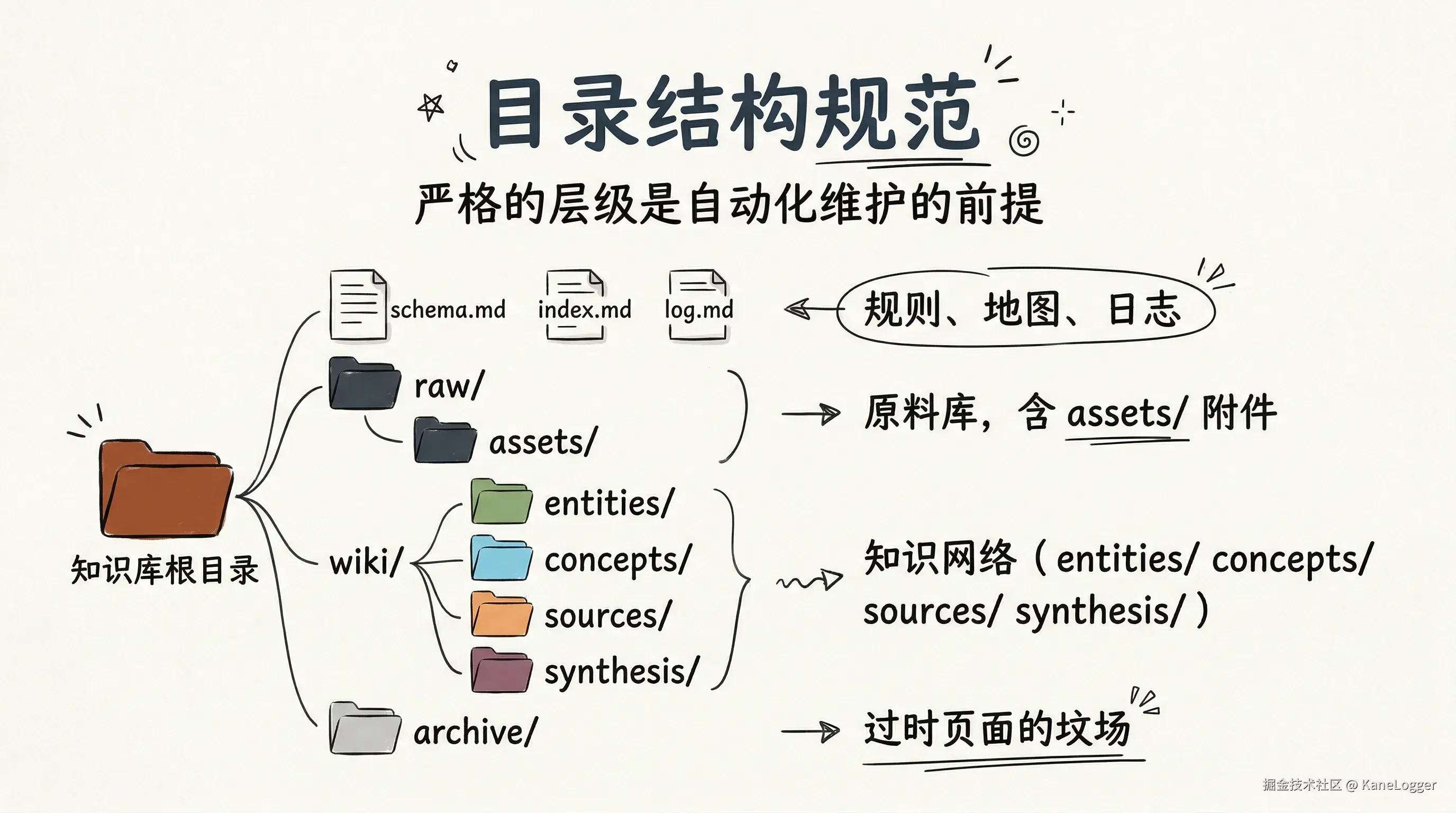 └── archive/ # 坟场:过时/废弃的 wiki 页面,定期由 LLM 迁移至此