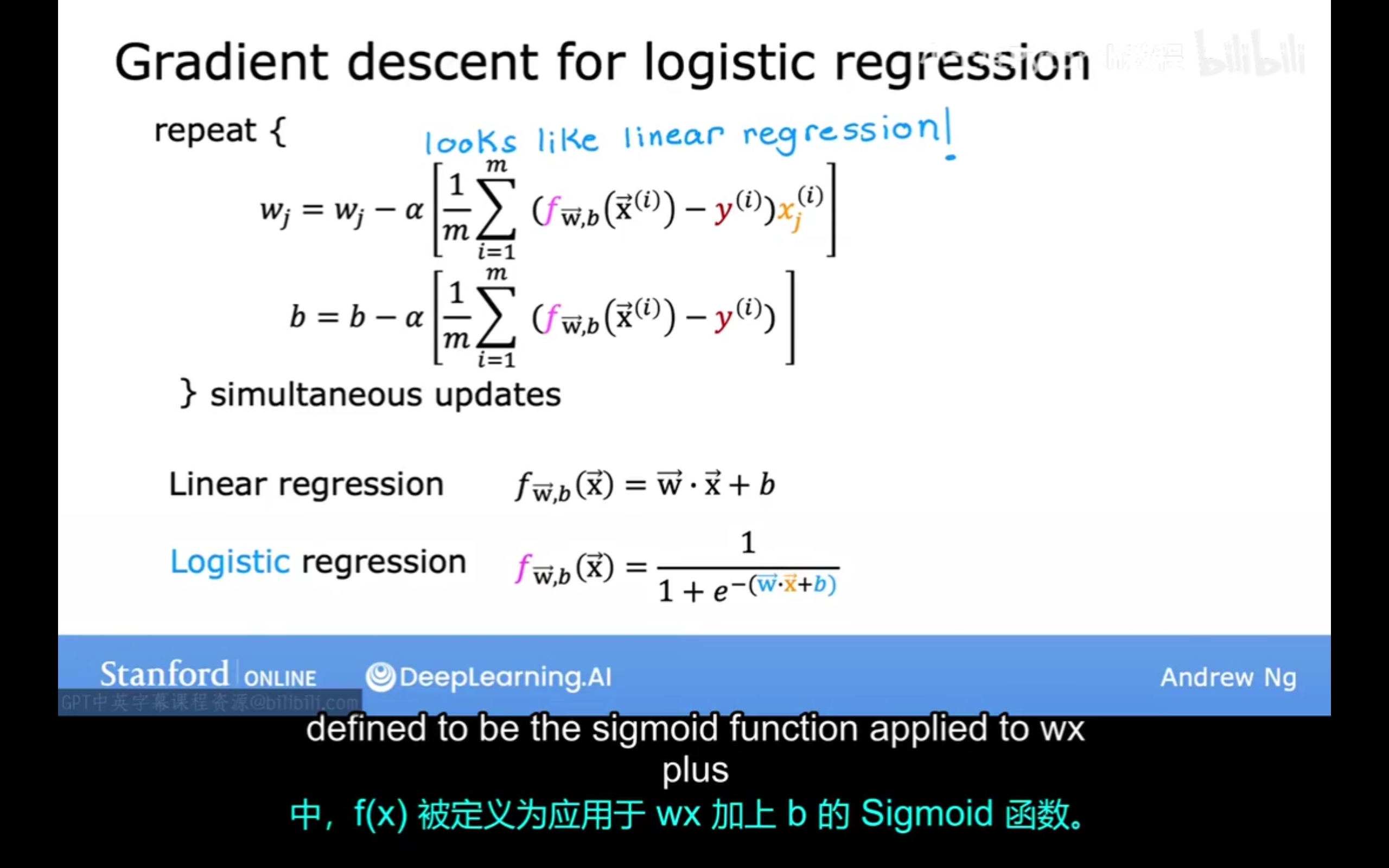 输出(的概率)f =给定输入x时,类别或标签y等于1的概率。