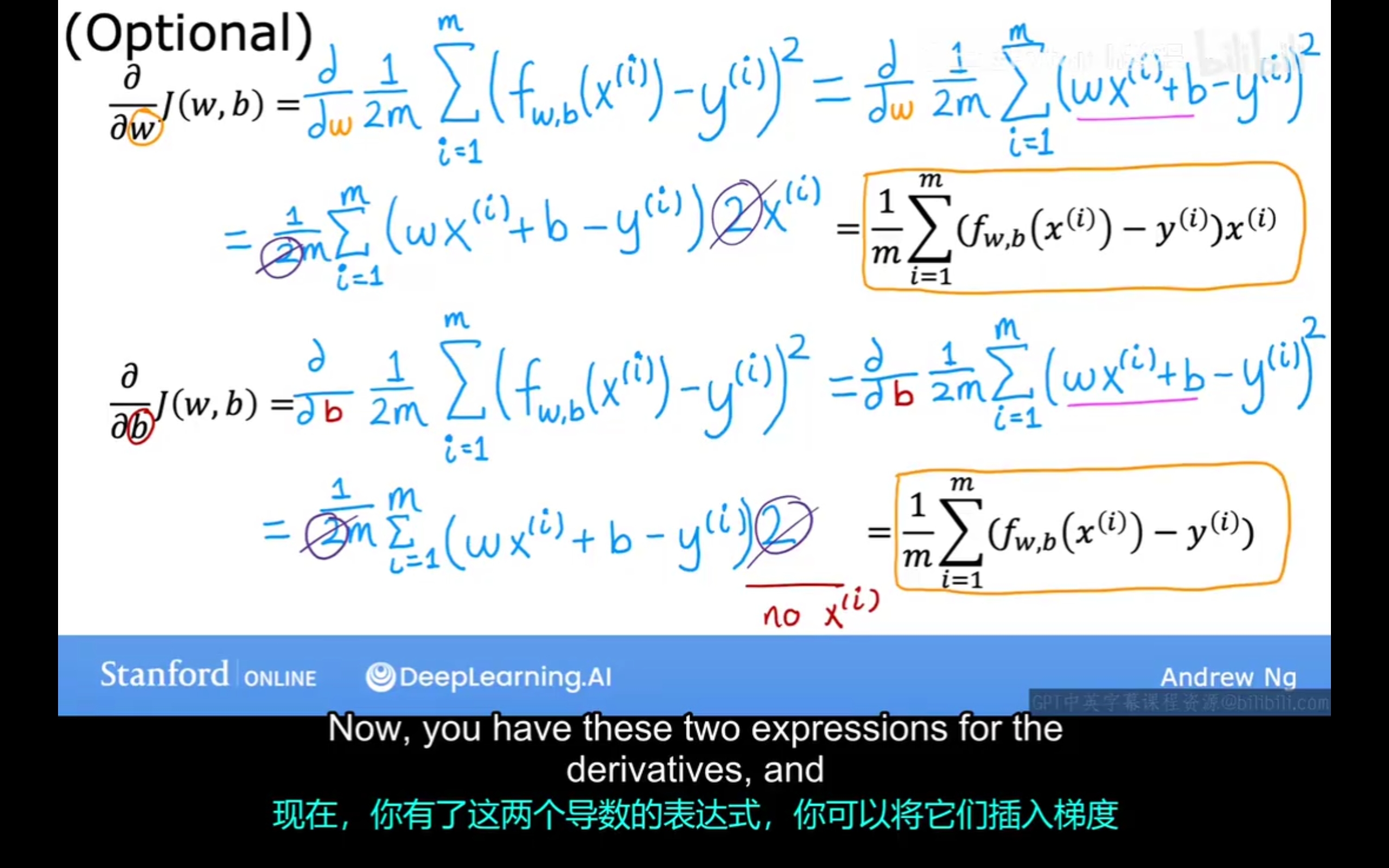 成本函数=代价函数:。方差除以2(不除以2也有效,只是这样更整洁,也称平方误差代价函数)。若b=0,则此时,J是关于w的函数,而不是关于x的函数(一元函数,导数)。b≠0时,J是关于w、b的函数(多元函数,偏导数)。