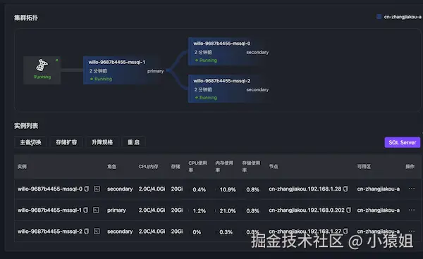 接入 Syncer 后,MSSQL 在 KubeBlocks 平台上获得了与 MySQL、PostgreSQL、MongoDB 等数据库接近的高可用能力,并在统一框架下实现了一致的高可用体验。