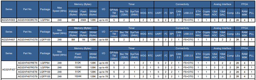 - 推荐型号:AG32VF407RGT6 / VGT6