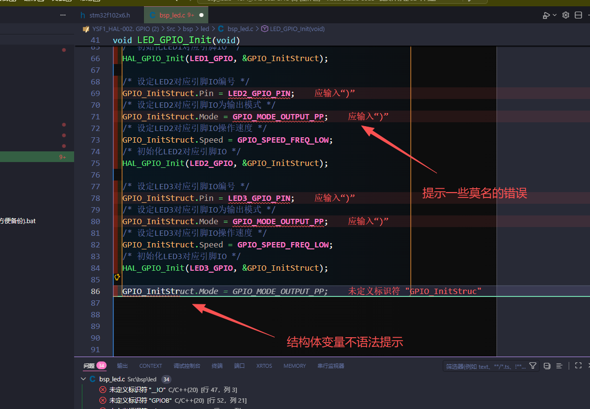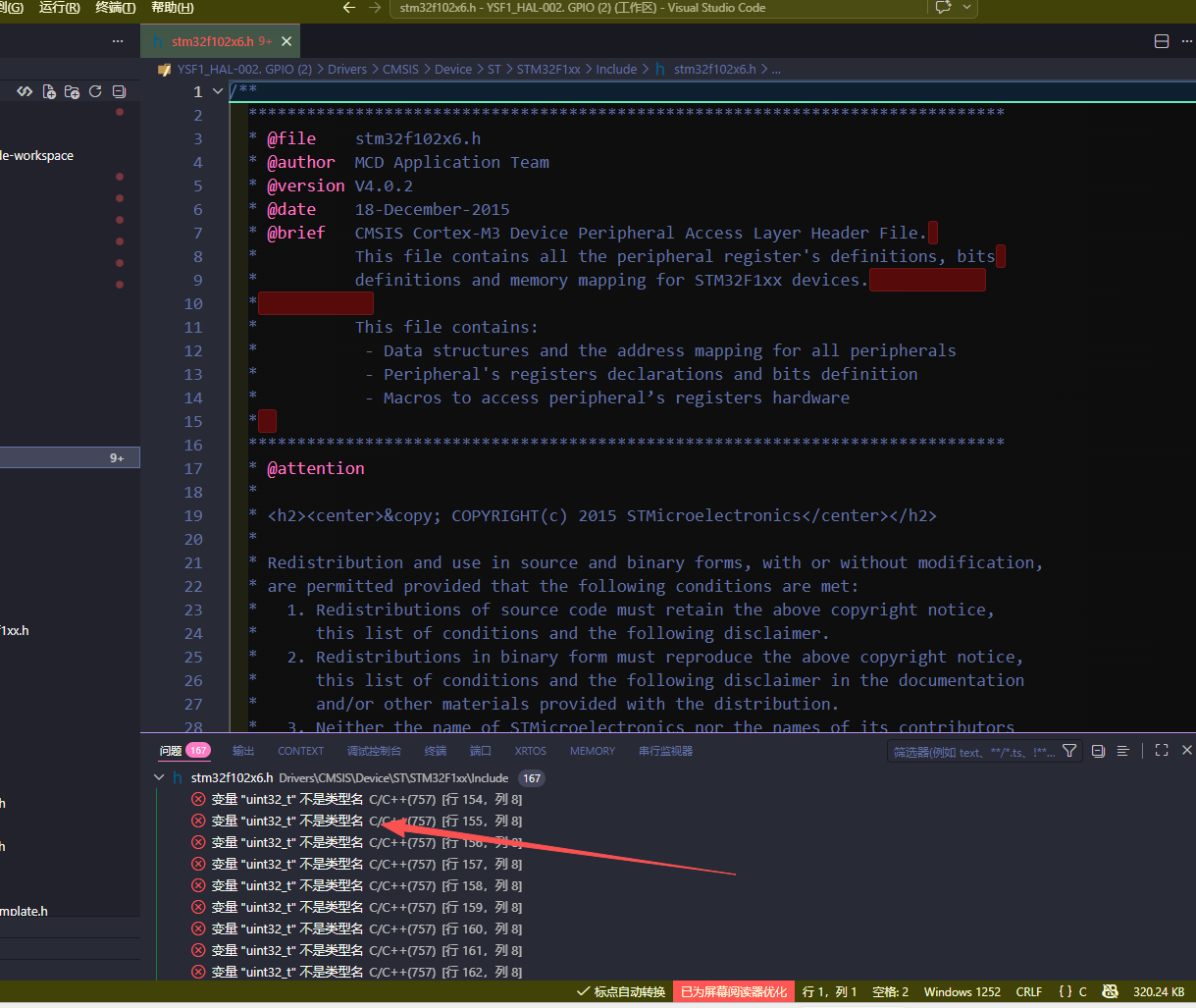 最近我在使用vscode+c/c++插件的环境来查看以前同事写的stm32单片机代码,使用vscode直接添加文件夹到工作区后在vscode的"问题"窗口中有好多错误,并且结构体变量没有语法提示功能,更不用说结构体成员变量的语法提示了。