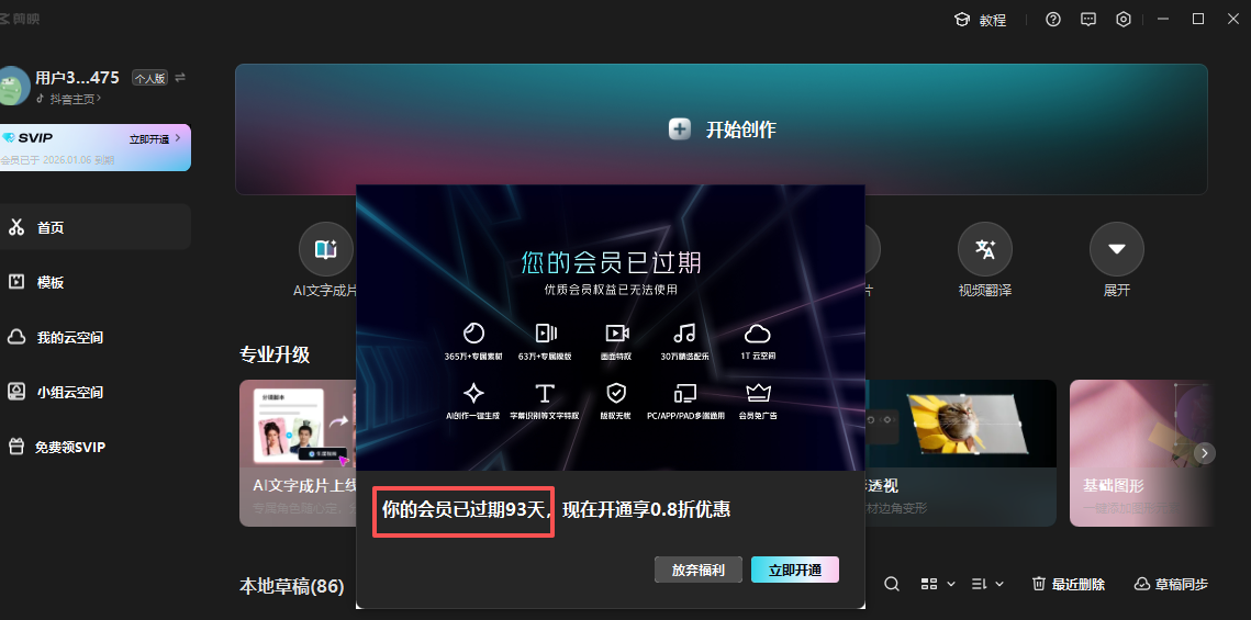 3.剪映(免费,转场特效要收费):拼接视频,调用音频,合成视频