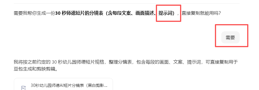 直接复制以下提示词到豆包,生成分镜与文案: