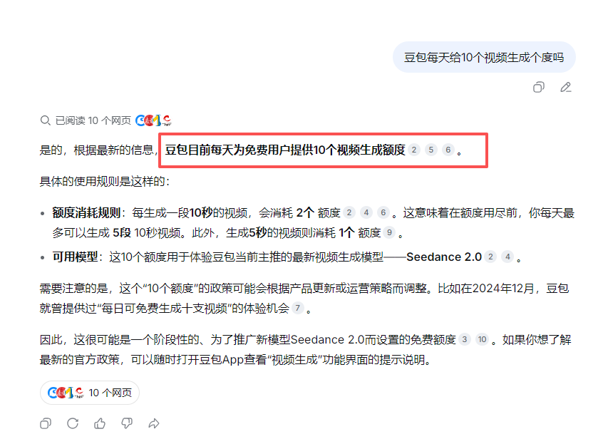 豆包每天给10个免费额度,一般可以做5段