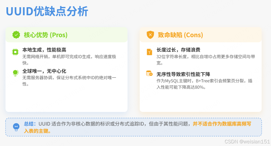 ✅ UUID:最"傻瓜"但最坑的方案,索引性能杀手;