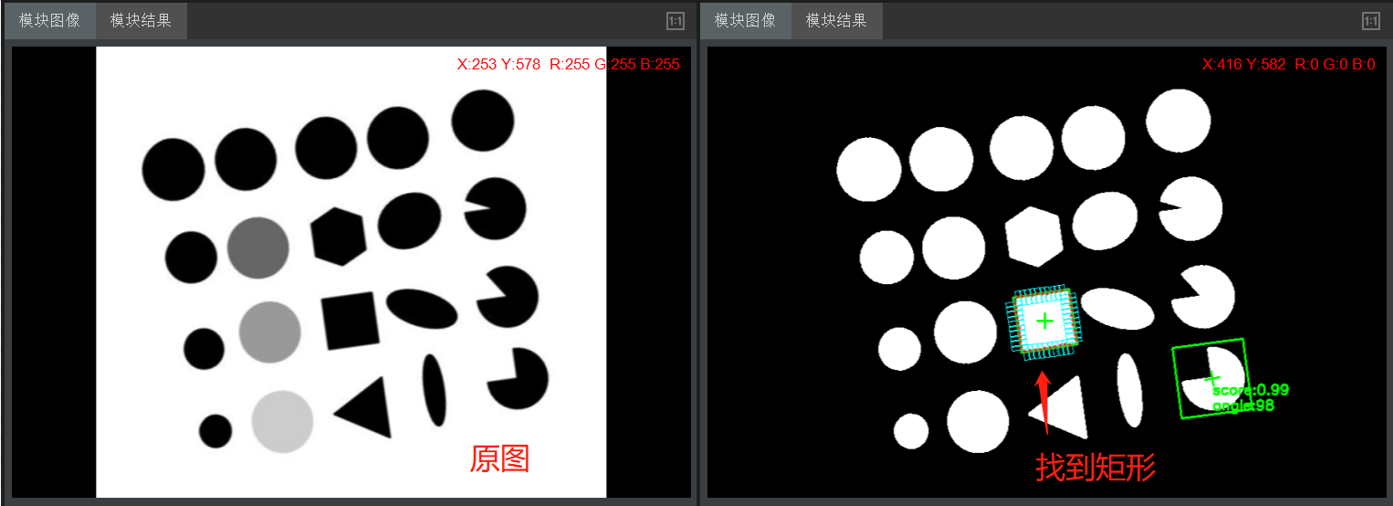 矩形卡尺与章44-直线卡尺基本相似,可看成是由四个边直线卡尺组合而成,本文仅介绍不同之处。