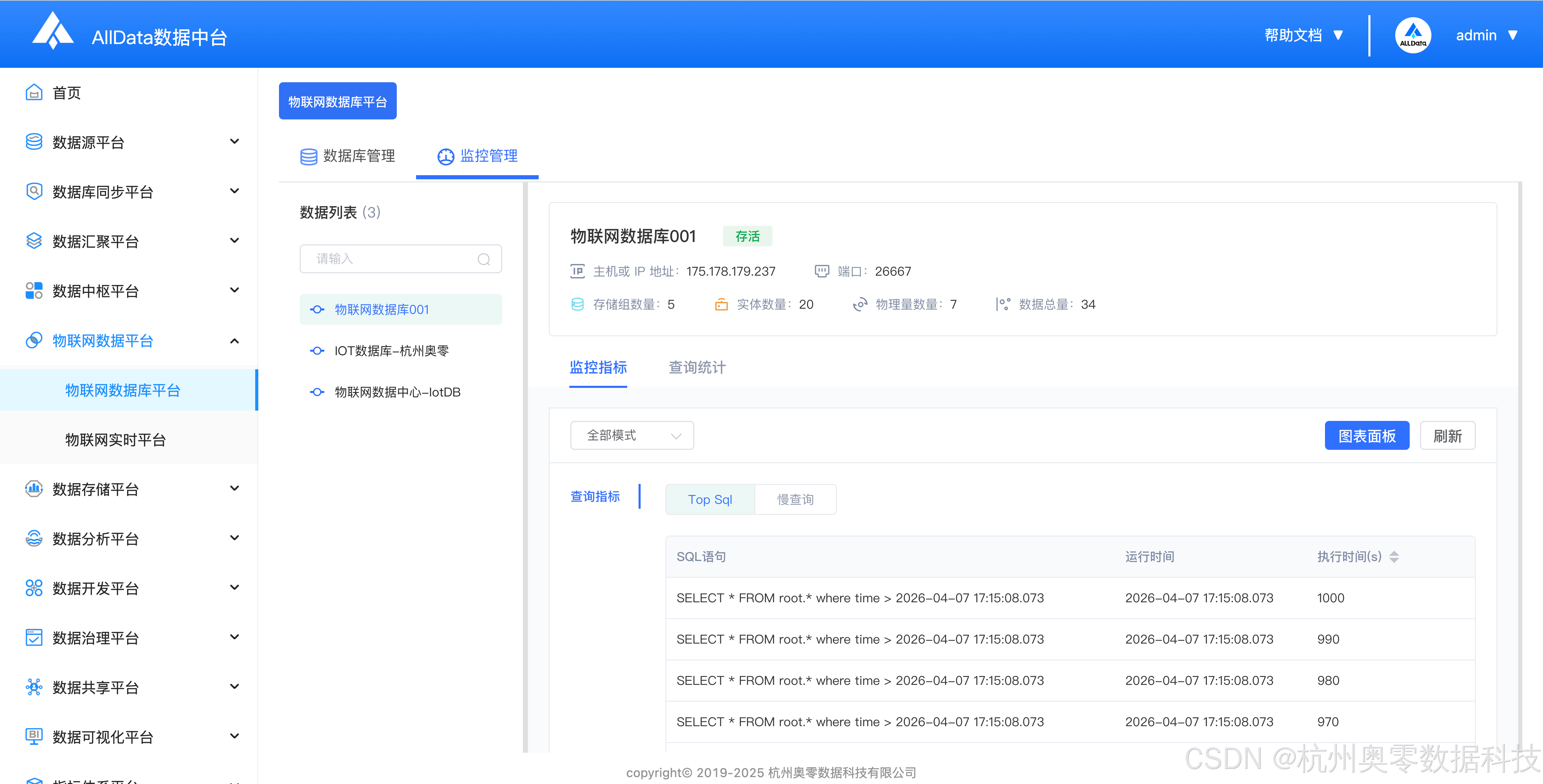 功能菜单四:物联网数据库监控管理