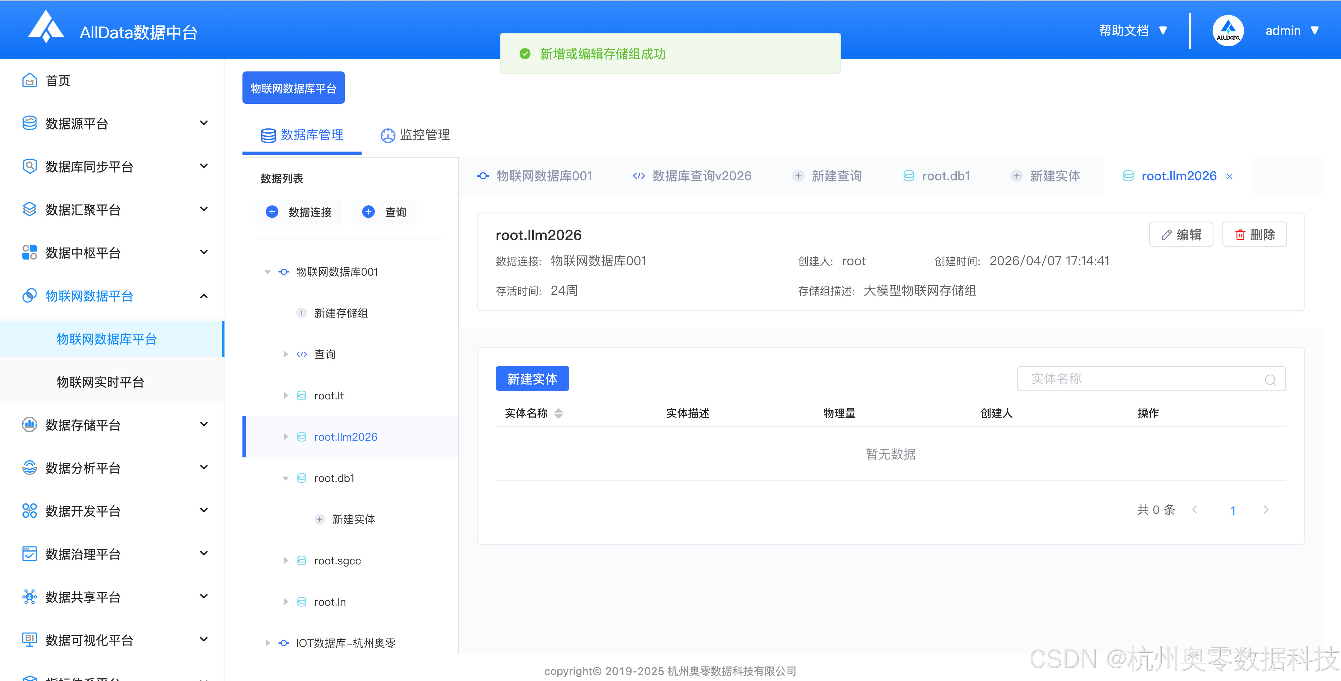 功能菜单一:物联网数据库平台