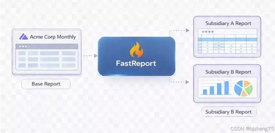 FastReport 支持报表继承------你把共用的标题、Logo、页脚、配色方案放在一个"基类报表"里,各子公司的报表直接继承基类,只需要覆盖各自的数据和局部布局。