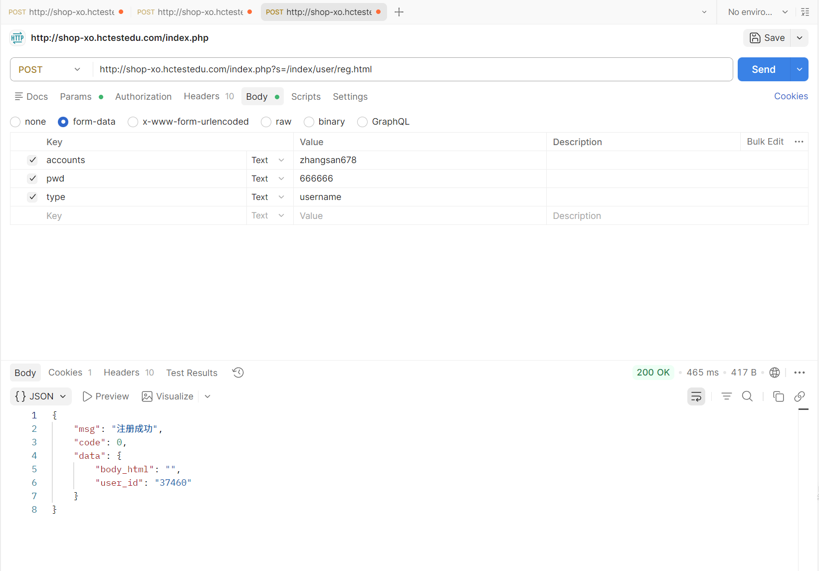 {"accounts": "zhangsan", "pwd": "123456", "type": "username"},