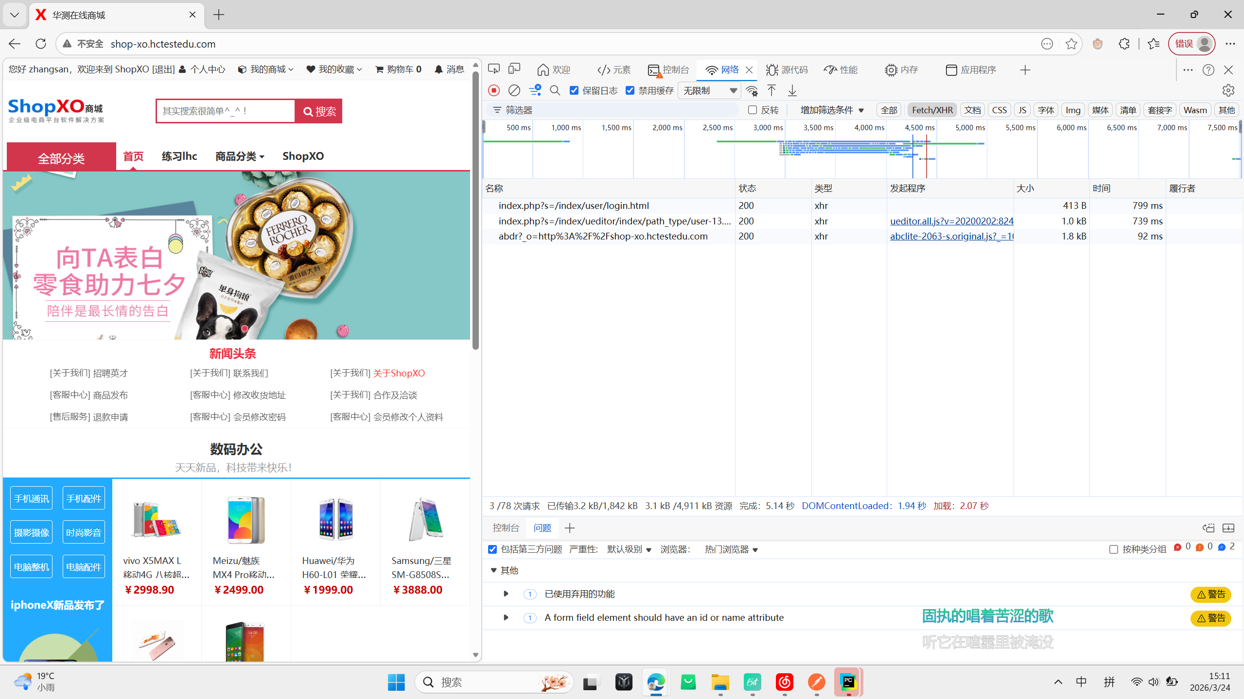 我们测试的网站为华测在线商城。一个非常适合新手练习测试的网站。网站如图: