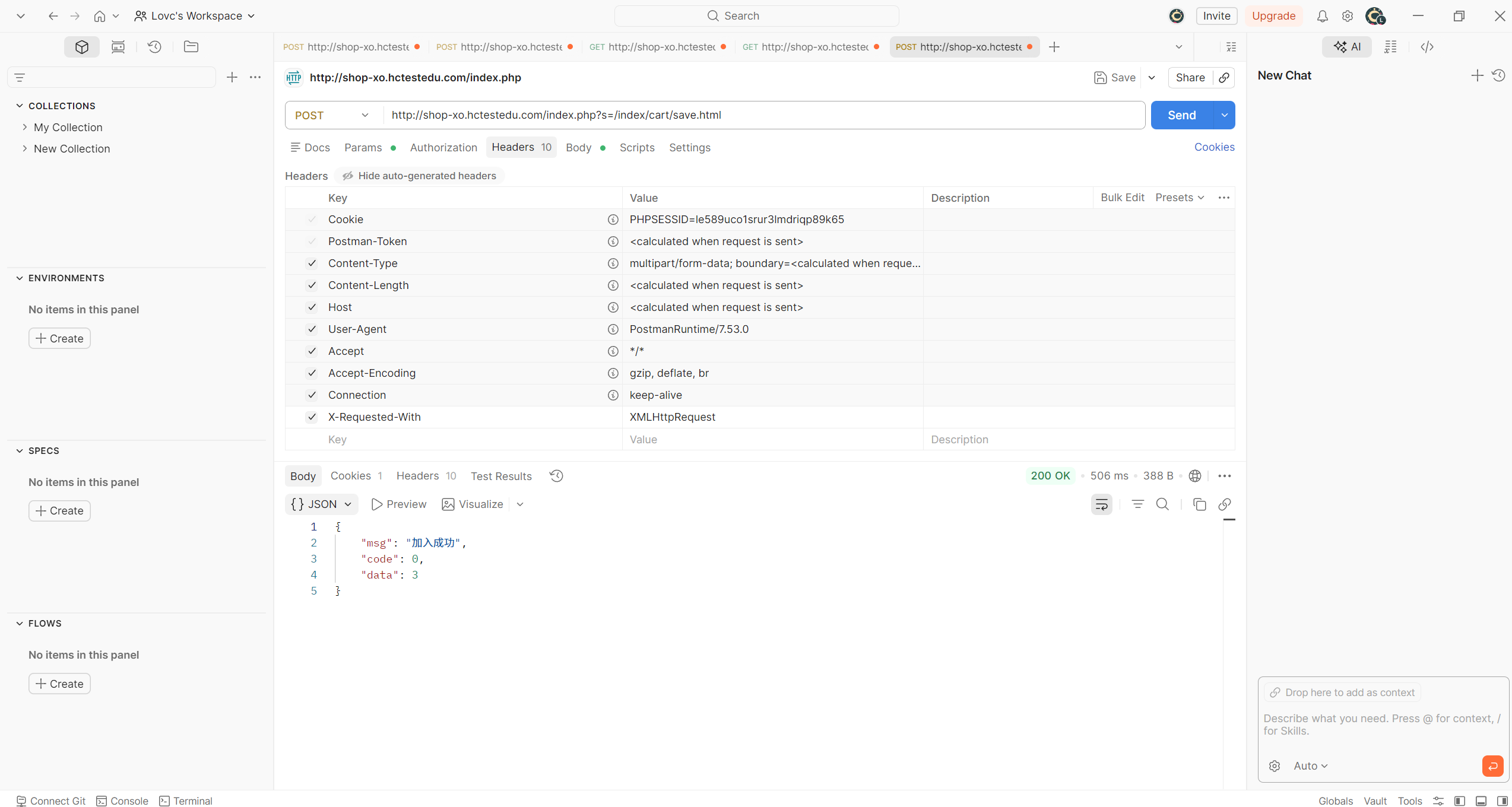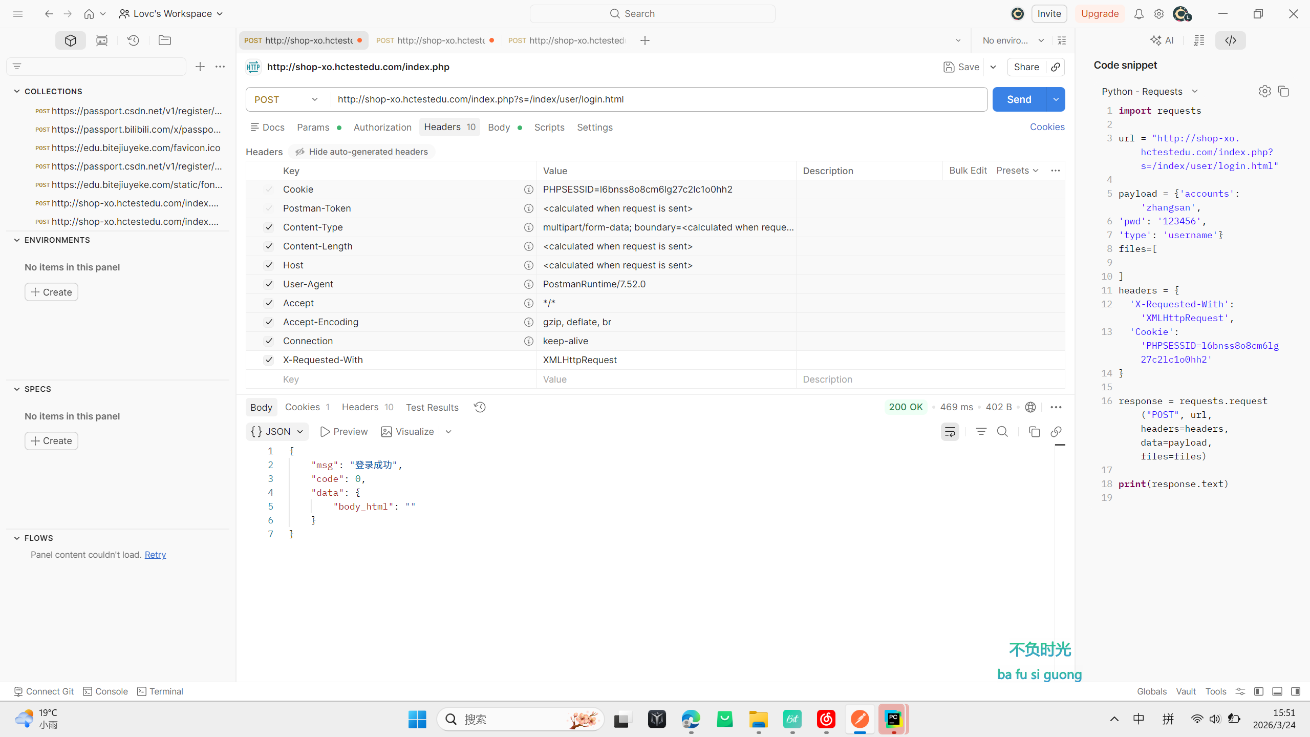 # 登录成功后将cookie写入YAML,供后续购物车等测试使用