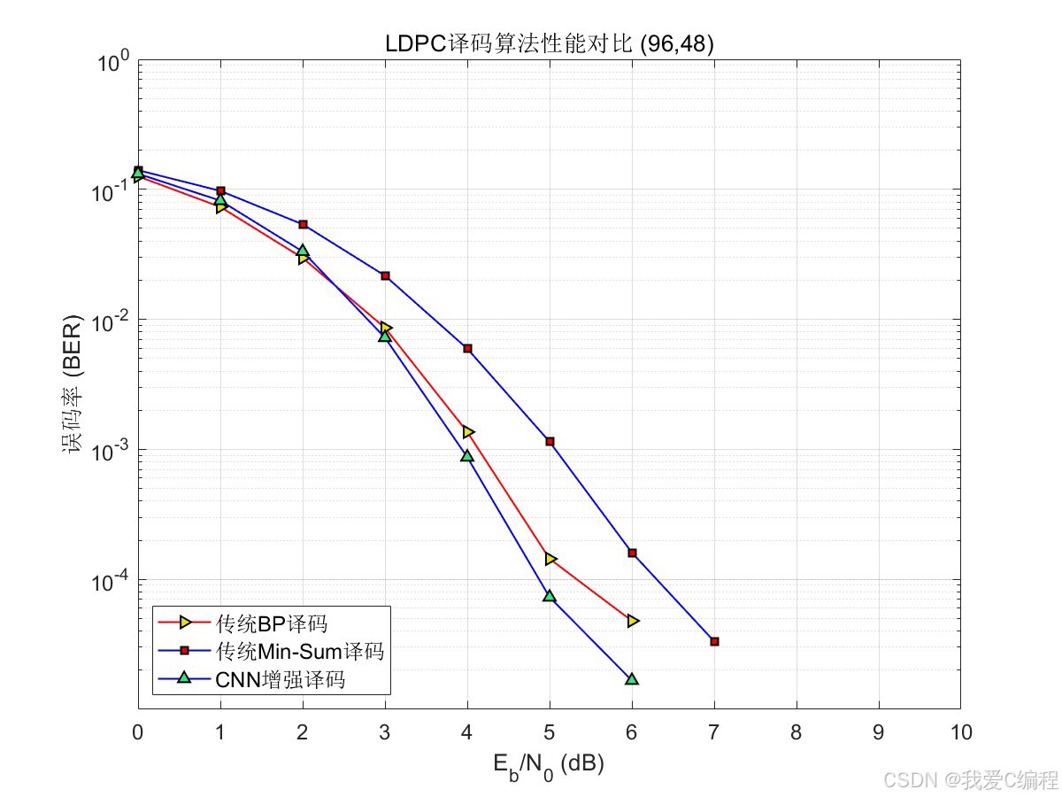 基于CNN的LDPC译码核心思想是:将LDPC码的Tanner图上的迭代消息传递过程展开为一个类似深度神经网络的多层结构,然后在每一层的边上引入可训练的权重参数。CNN模块被嵌入到迭代译码的各个阶段,用于对传递的消息进行非线性变换和特征提取,替代或增强传统译码中的固定数学运算。通过端到端的训练,网络能够自适应地学习最优的消息更新策略。