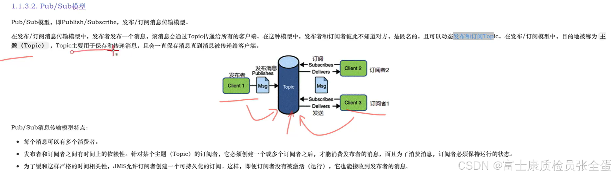 对于点对点的模型来说,消费者消费了一条数据,那么这条消息会从消息队列中移除。而发布订阅模式,订阅者在收到消息之后,它并不会从主题当中移除掉。因为还有其他的订阅者要用。