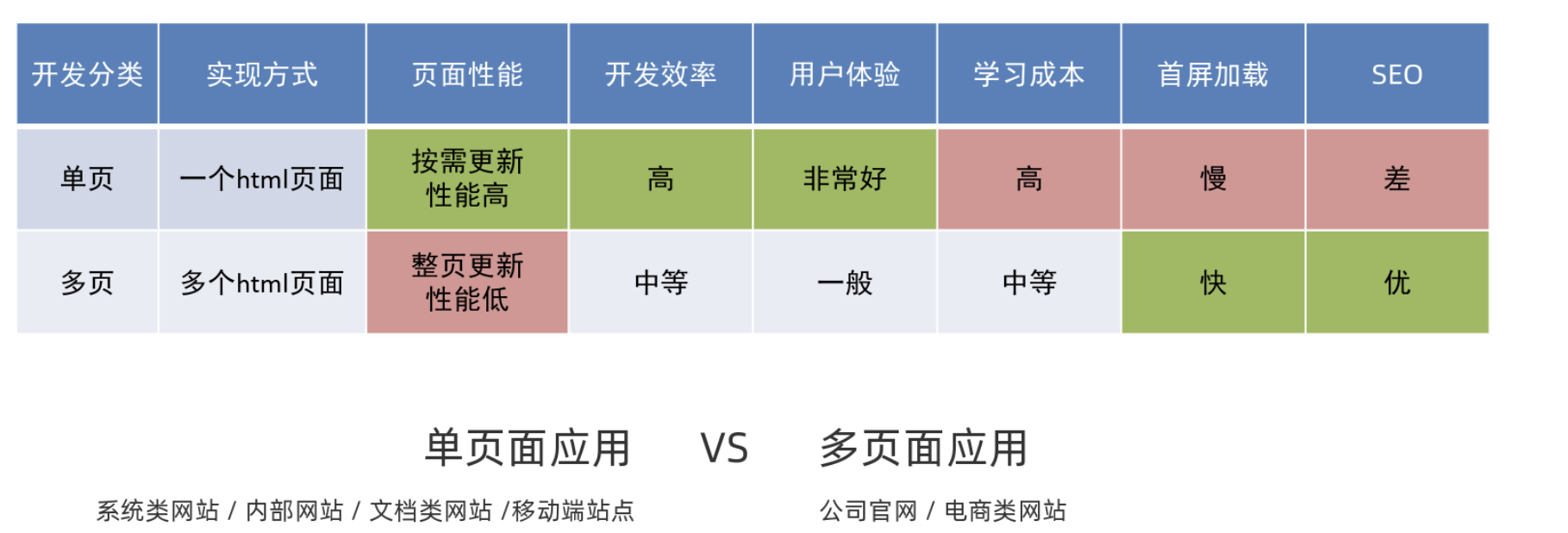 我觉得简单来说单页应用就是有一个页面作为主体,其他扩展功能都是在本页面进行页面更新渲染。而多页应用则是在一个页面作为主题,扩展功能都进行跳转展示;