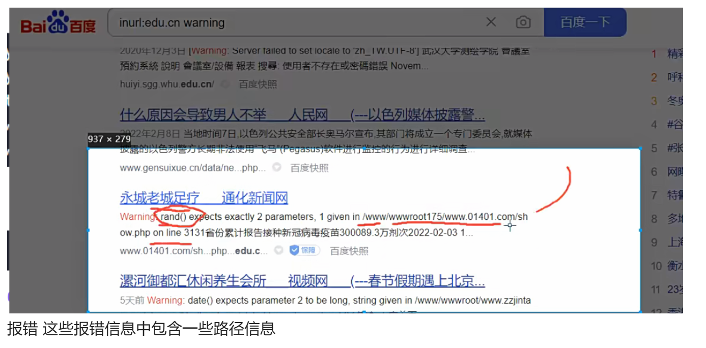 - 报错泄露:故意输入错误参数,让页面报错,泄露绝对路径;