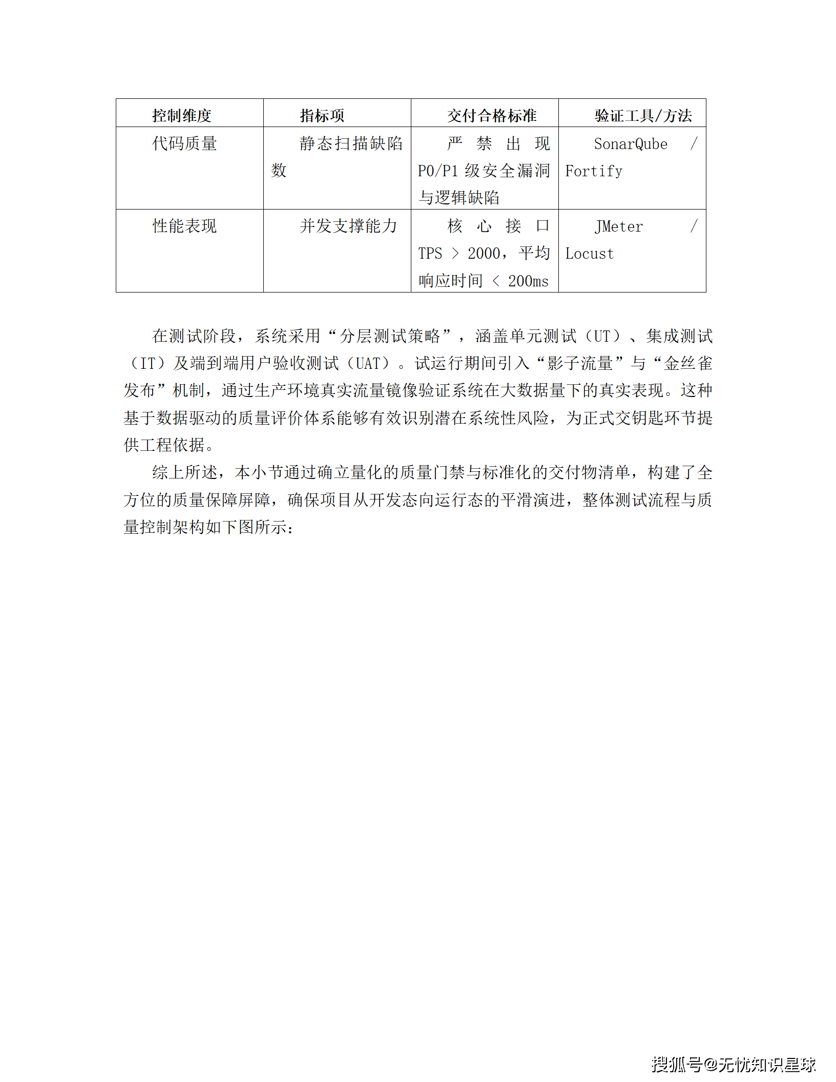 - 质量门禁: 实行"一票否决制"。核心接口TPS需 > 2000,代码单元测试覆盖率需 > 80%。