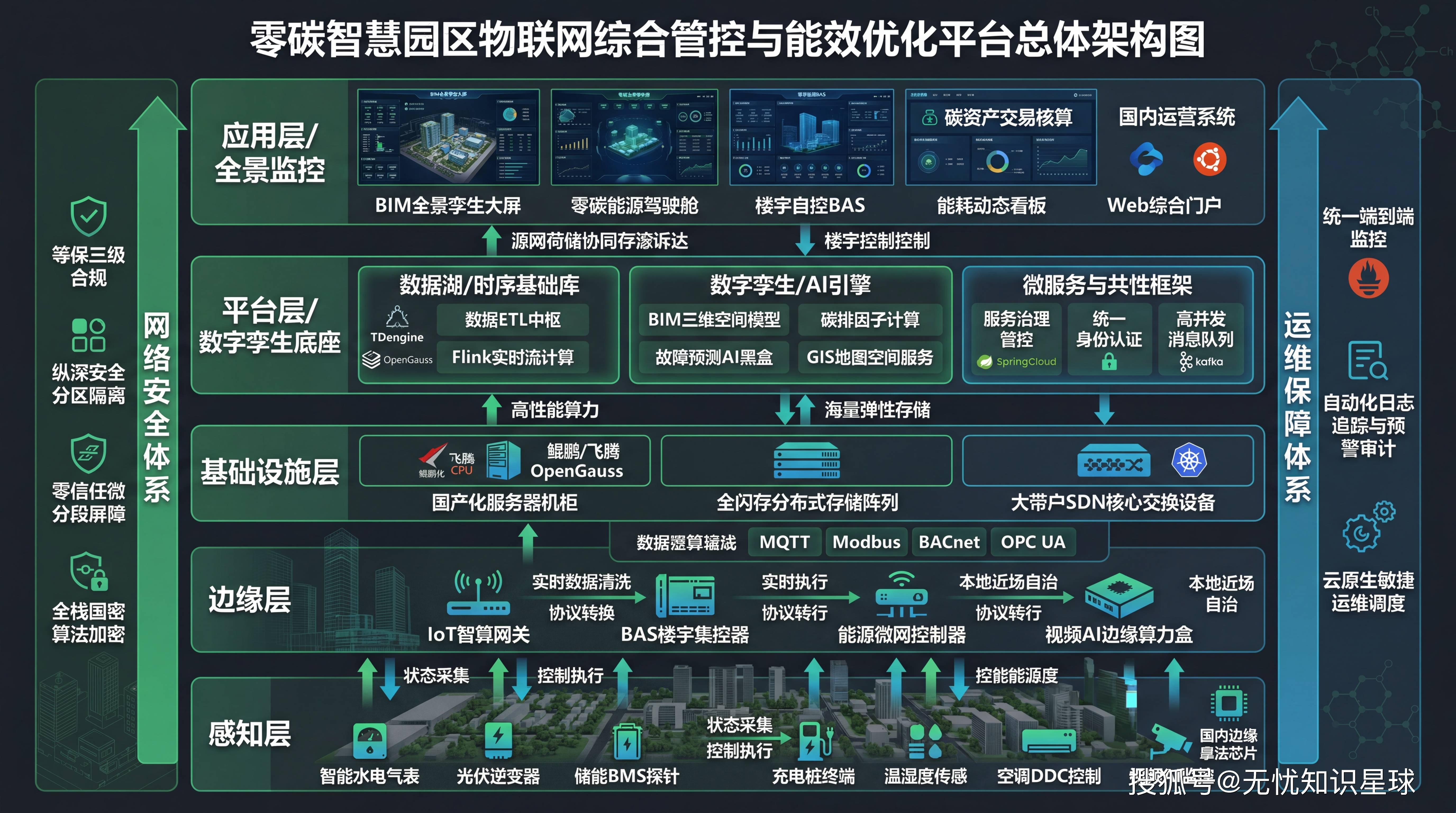 在"双碳"战略的宏大叙事下,数字化转型不再是园区的"加分项",而是生存的"必选项"。本文将解构一个基于"端-边-云-用"一体化架构的零碳智慧园区范本,揭示如何通过IoT与BIM的深度融合,将能耗"黑盒"转化为透明的碳资产,实现从粗放式管理向毫秒级源网荷储协同的质变跨越。